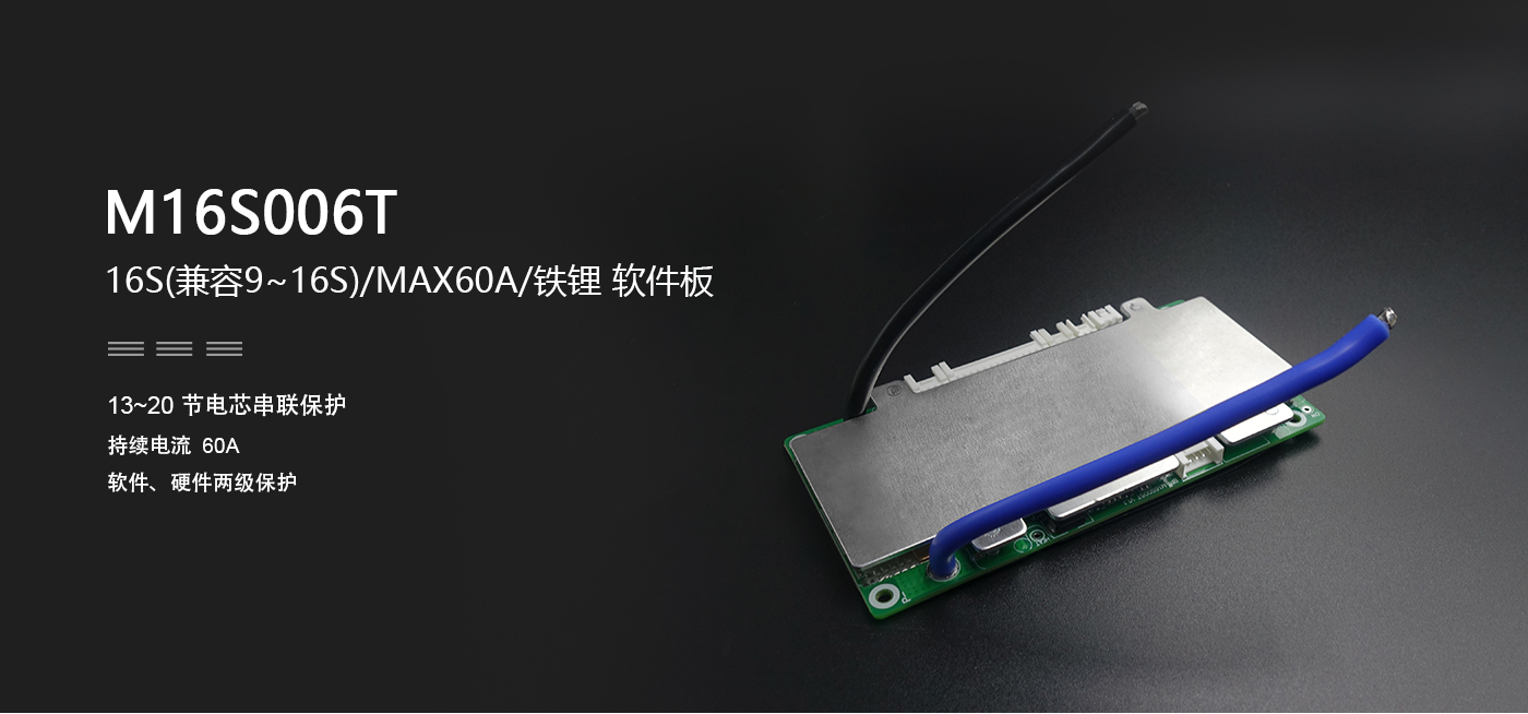 河馬M16S006T是我司專門針對動力電池 9~16串電池包而設計的保護板方案;可適用不同 化學性質的鋰電芯,如鋰離子、鋰聚合物、磷酸鐵鋰等。此保護板帶載能力強,最大持續(xù)電流可達50A。